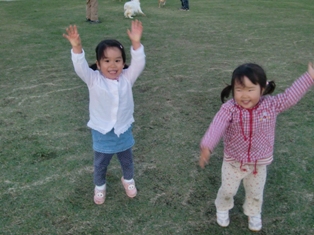 体操?(お友達のあおいちゃんと)