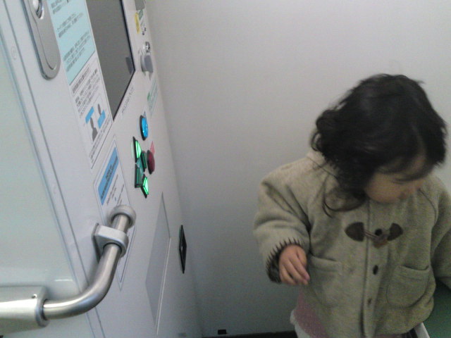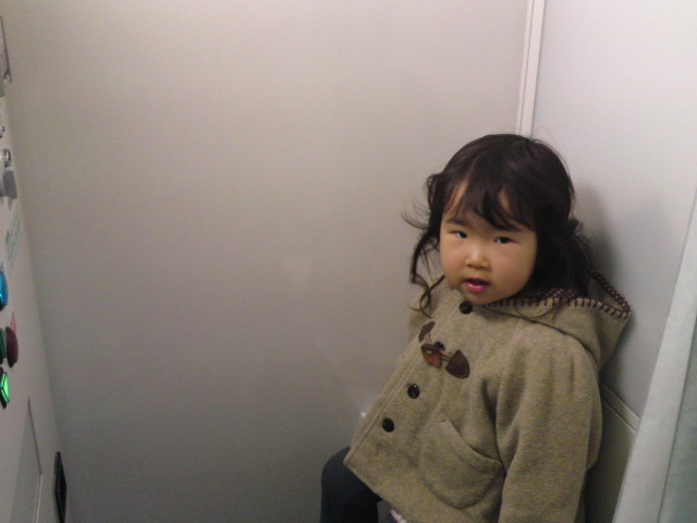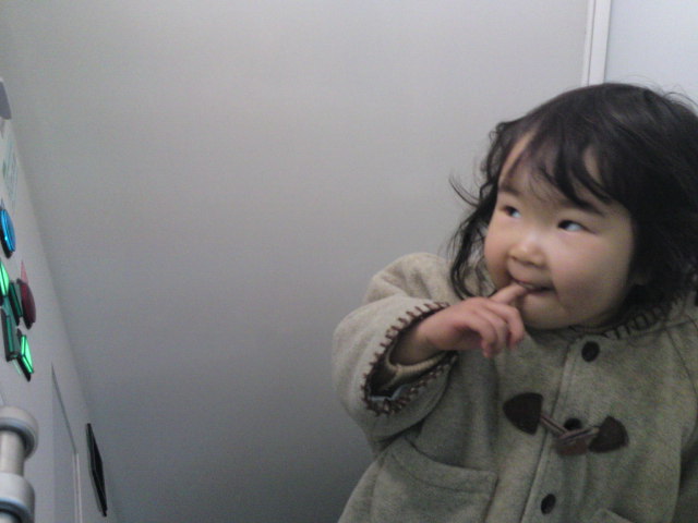 仕事帰りのダンナと待ち合わせしたとき、みぃが証明写真機に入り、ボタンを押したらなんかしゃべってきてさ、みぃがビックリして大泣きしたんだよ。確かに2歳のとき・・・。