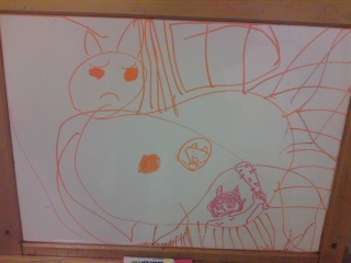 鬼の体にちっちゃい鬼がいて、「これはなに?」と聞くと「赤ちゃん鬼だよ~」と言っていました。