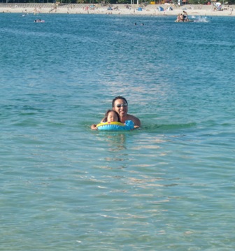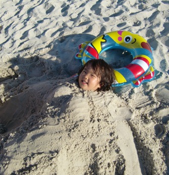 海へ!旅館から歩いてすぐのところでした。ゆずずは怖いとかなくて、大はしゃぎ!