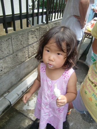 途中の休憩所でいただいたアイス。棒アイスデビューしてしまった…(汗)食べ方がわからず暑いのもあって手にデロデロ…(笑)