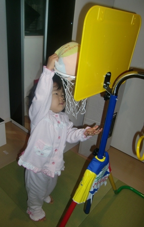 意外だったのが、サブでついていたバスケットのゴールがすっかりお気に入り。あとあとロッキーと話していたんだけど、何度かバスケの試合を見に行っているので、それと同じのができるからうれしかったみたい。