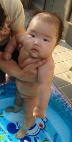 まだおすわりもハイハイもできないのに、ガッツリ立ってます。