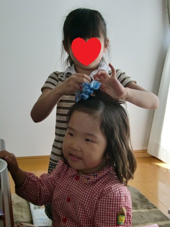 ゆずず:「えへへ」とニッコリ。このシュシュはプリキュアのものらしく、ゆずずにくれました。ありがとう!