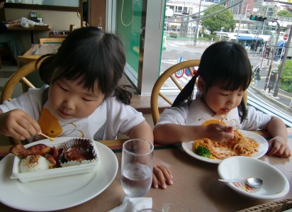 帰りにお友達みんなでごはん。お子様ランチBOXを頼みましたが、足りずにマコのドリアを少々分けてあげました^^;