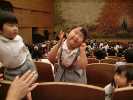 開演前にパシャリ。ゆずずがあんまり変な顔で長いことポーズをとっているので、両脇のお友達、りゅうちゃんとひなちゃんが若干ひいてます…(笑)