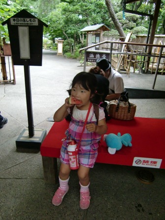 お昼をしこたま食べたのに、無料でスイカを配っていて、ゆずずは迷いもせず食べました^^;