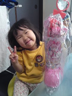 そしてプリキュアの長靴お菓子をもらって、それはそれはもう大喜びでした。