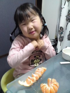 ブログで楽しく交流をさせていただいている、どくとる☆はにわさんの記事で面白いものがあり、早速やってみました。それがこちら→みかんの面白いむき方