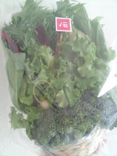 朝ゆずずが、お父さんの指令のもと冷蔵庫の野菜室をあけて、私に渡してくれました…(笑)野菜のブーケです。