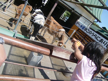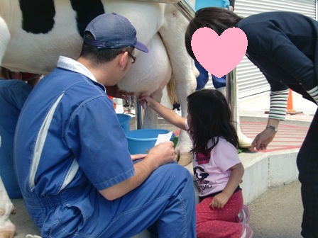 乳搾りも初体験!まだ上手にできなくて、飼育員さんに手伝ってもらいました。