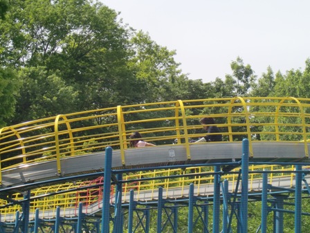 110mのローラー滑り台は行列ができていて、並んで滑りました。