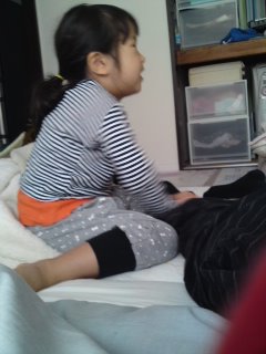 朝ゆっくりしてたマコ、ゆずずの方が早起きで、「ふくらはぎマッサージして~」と言ったら、いい感じでやってくれました♪