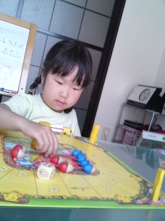 そのあと、ゆずずがハマってるネズミのすごろくゲーム。お誕生日によっちゃんののちゃん(マコ父母)にもらいました。ほとんど毎日やってるこのゲーム。ネコに食べられる前にチーズの楽園にたどりつけるか?!っていうわくわくドキドキのゲームで、大人も楽しめます♪ありがとね~。