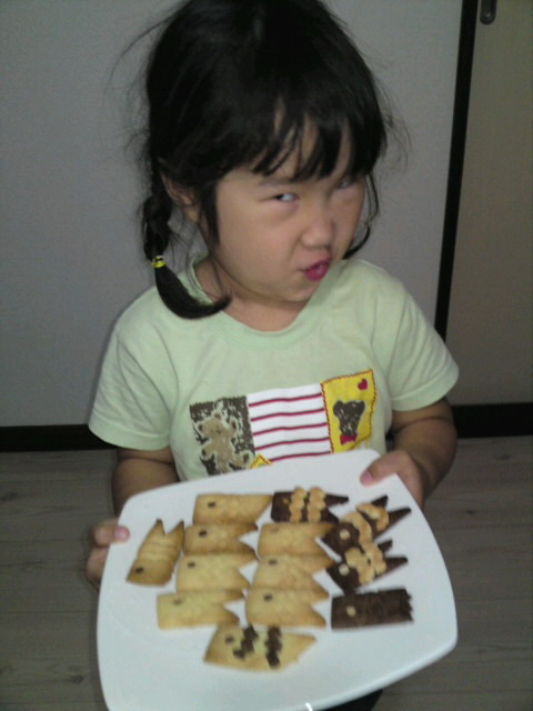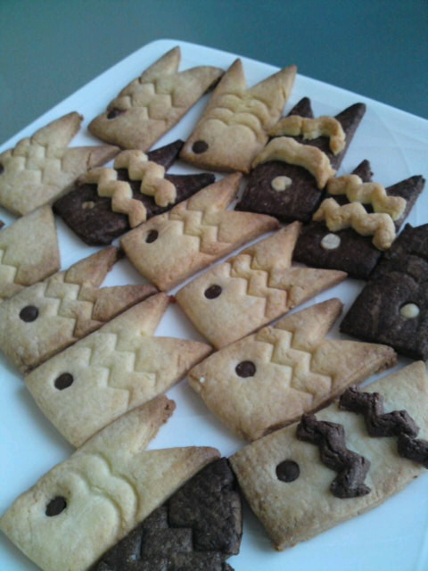 そしてGWクッキング第二弾。こどもの日バージョン鯉のぼりクッキーです。ゆずずには材料の計量と生地づくり、目玉をストローでくりぬいてチョコチップを入れてもらい、うろこをつけてもらったりしました。