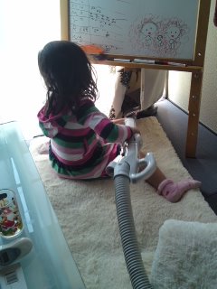 掃除機。角のほこりが気になって、ごしごしやってました^^;