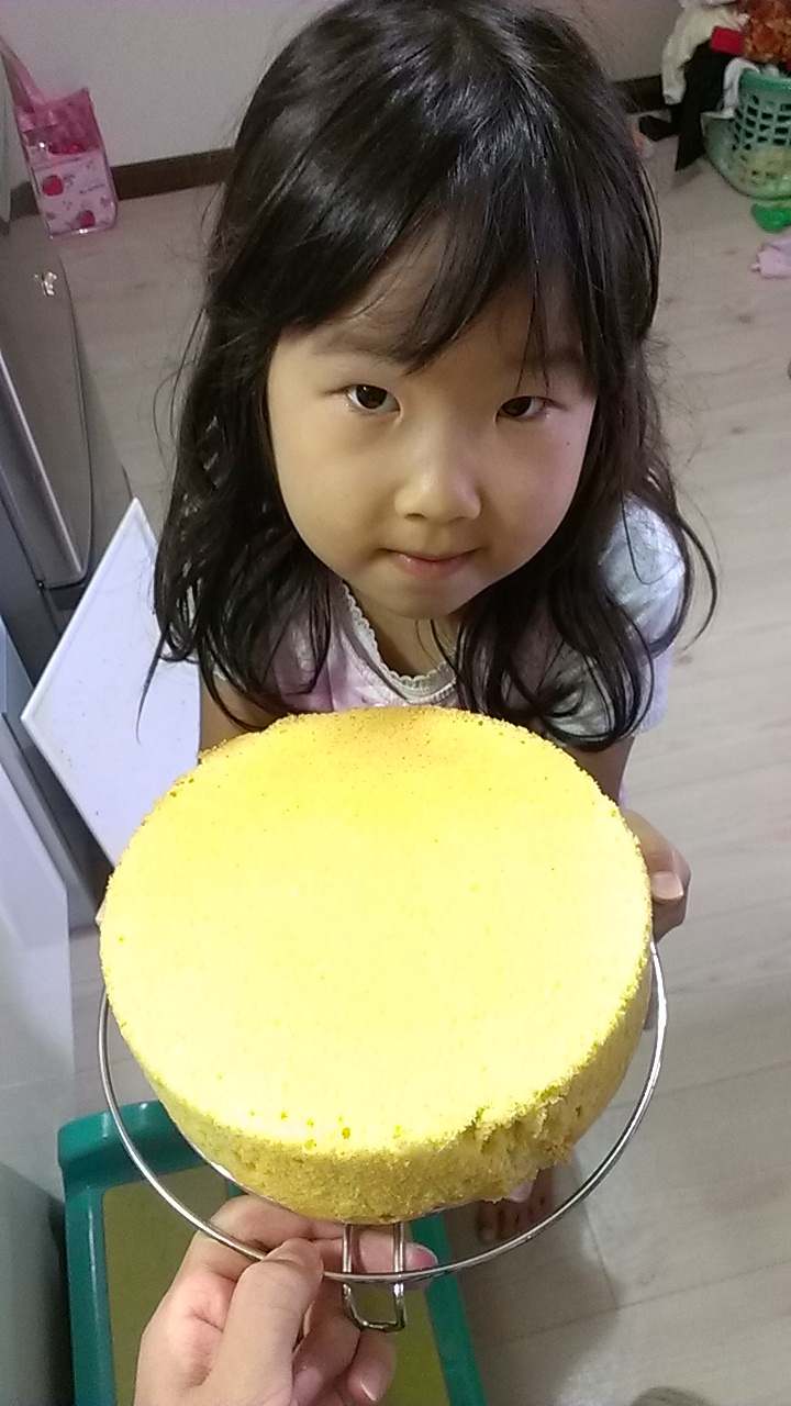 スポンジがやけたところ。ちょっと焼けムラが…。真ん中に入れないと温度が一定じゃないのよね・・・うちのオーブン・・・。