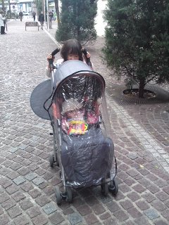 ベビーカーを押したがるゆずず。少しの間押させてもらいました・・・がまだ怖いですね^^;