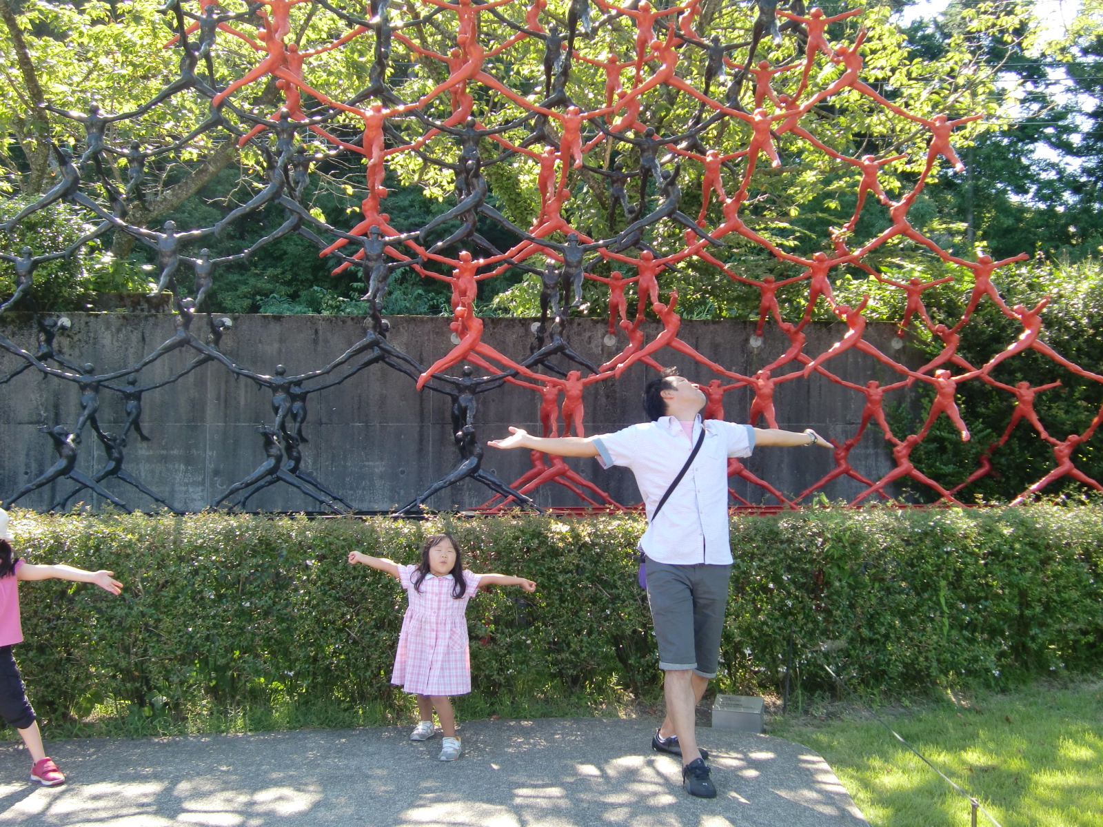 初日は箱根。箱根彫刻の森美術館へ。オブジェと同じ格好に。