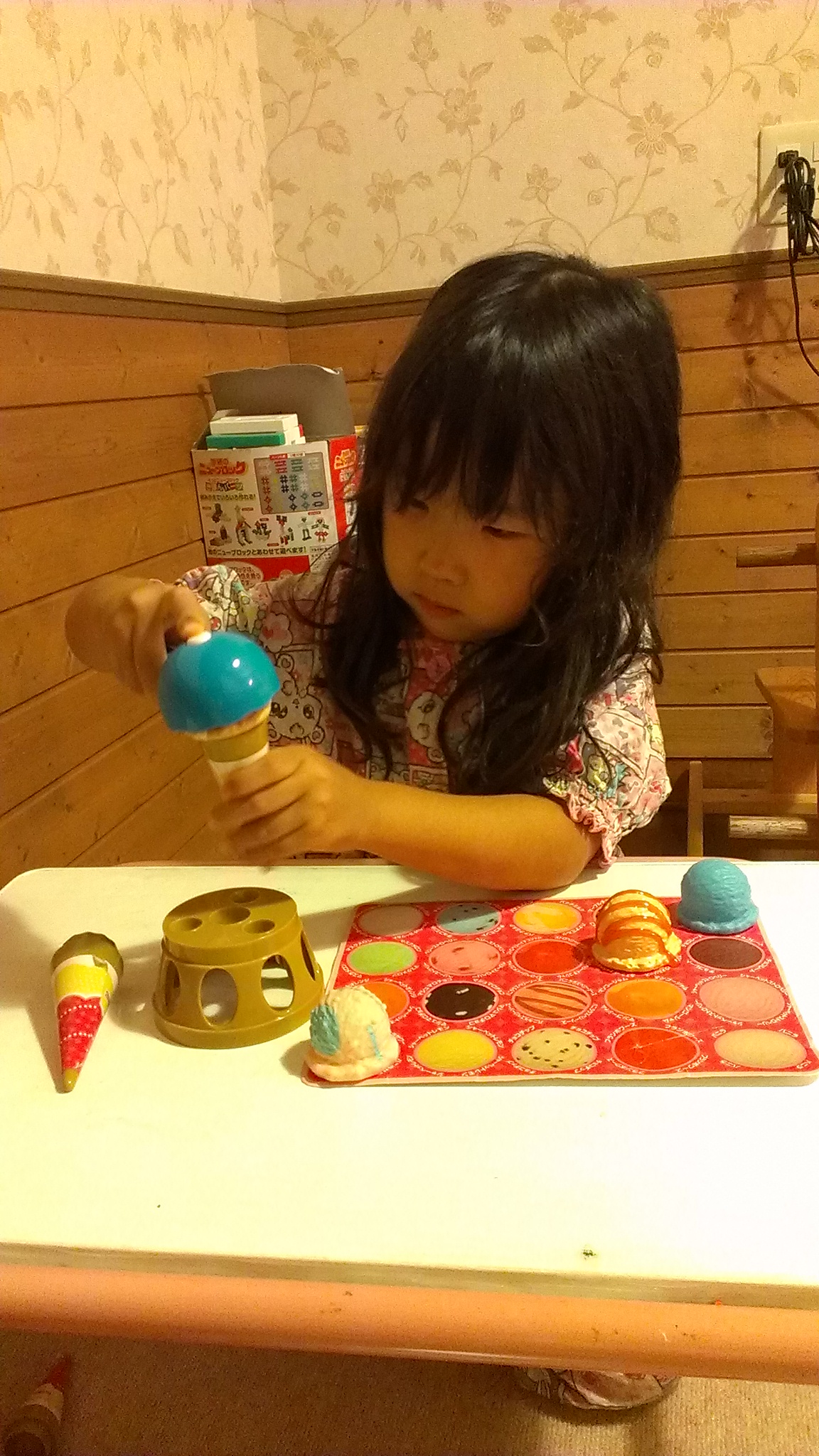 この日は山中湖付近のペンションに宿泊。キッズルームにあったアイスクリームのおもちゃがすっかりお気に入りになって、お店屋さんごっこに。