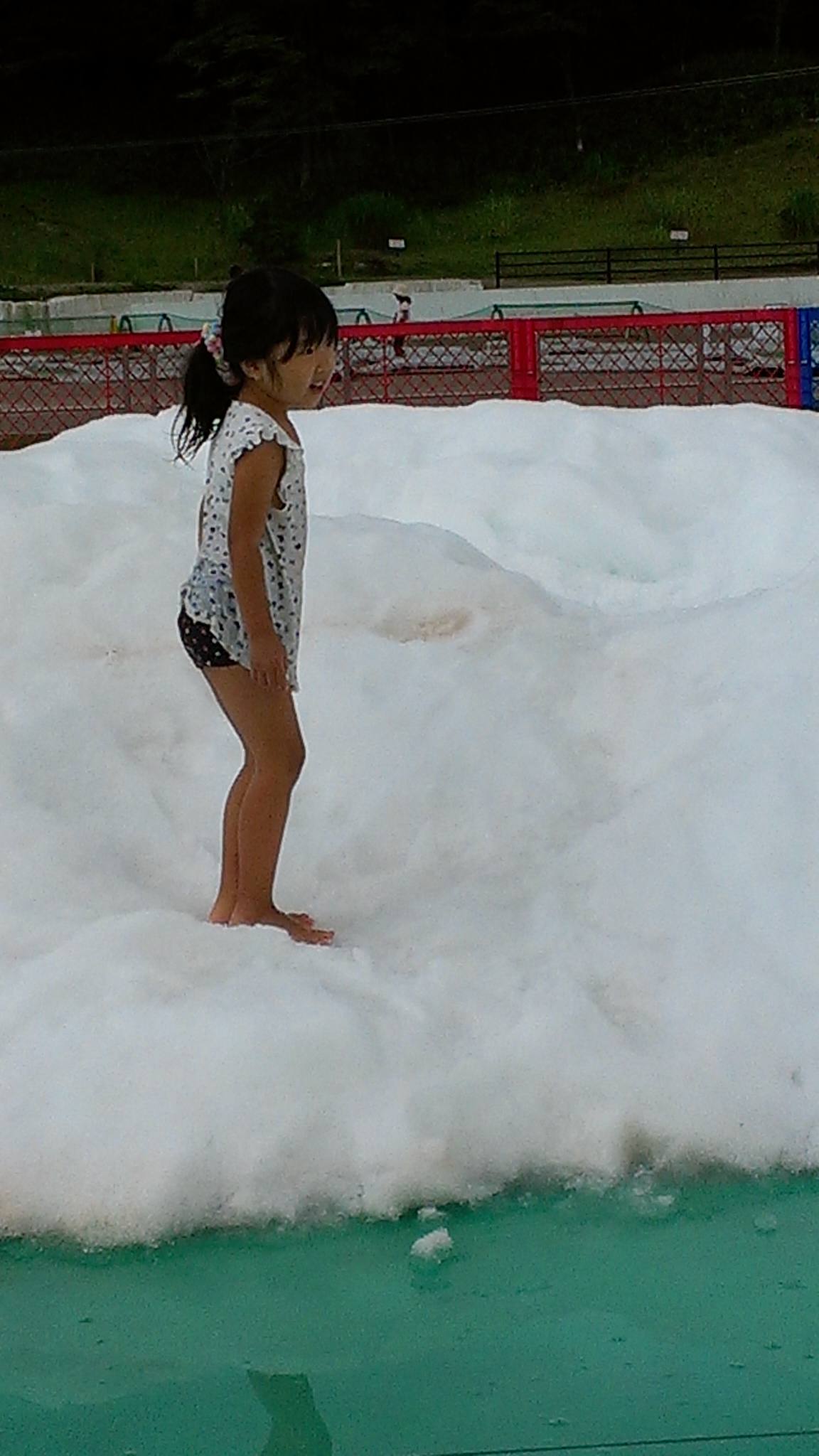 着替えを持ってきてなかったので、薄着にして置いてあった雪の山へ。かなり冷たかったです。