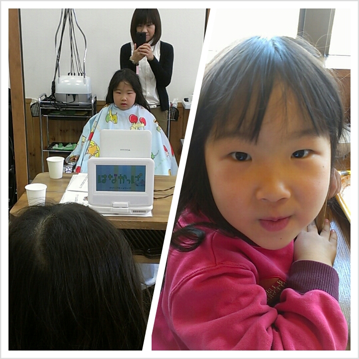美容師さんには「人見知りしないですね~」と言われました。いいのか悪いのか?(笑)右が切った後。前髪と後ろはほんとにちょっぴり。