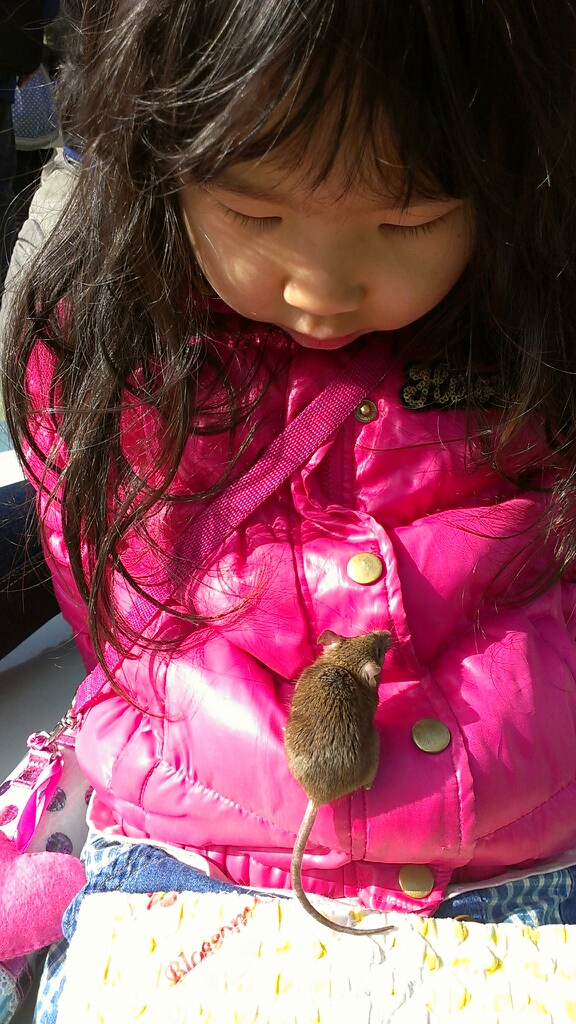 ねずみさんが服の上に乗ってドキドキ。