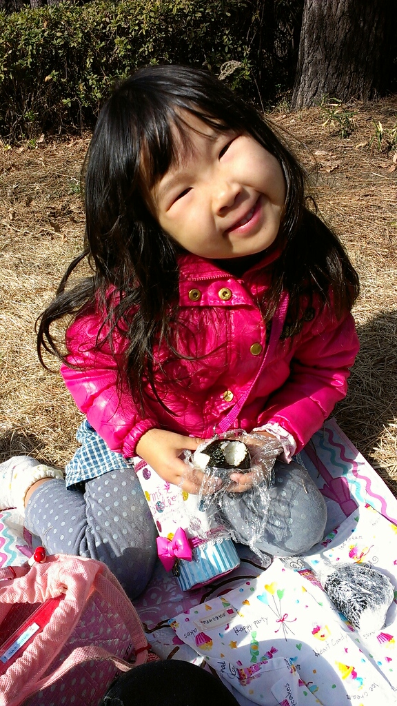 お弁当食べてるんるん。最近の好きなおにぎりの具はたらこ。